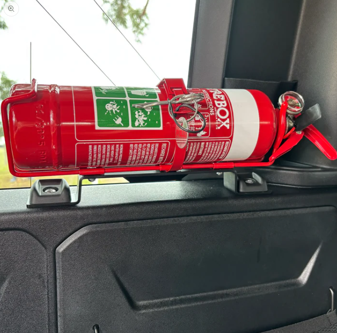 Upgrade your Land Rover Defender L663 with our heavy-duty fire extinguisher mounting bracket, designed for durability, convenience, and a perfect fit.