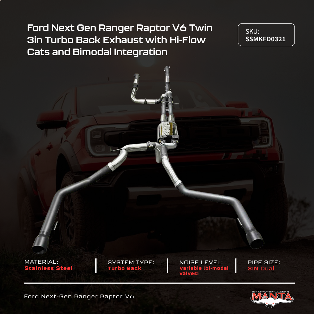 Introducing the Next Gen Ranger Raptor V6 Manta Performance exhaust range — built in Australia for serious touring, towing, and off-road use.