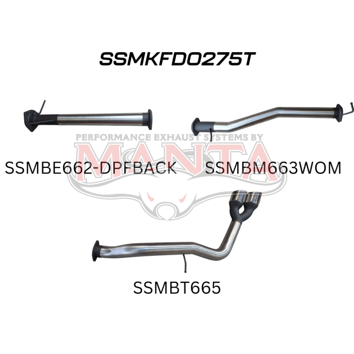 Manta Next Gen T6.2 Ranger V6 3in DPF Back, Twin Tip Side Exit